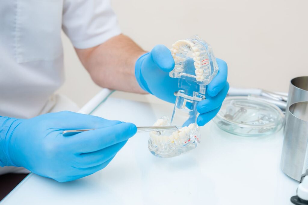 Aligners gently move misaligned teeth through trays that are worn in a series over time.